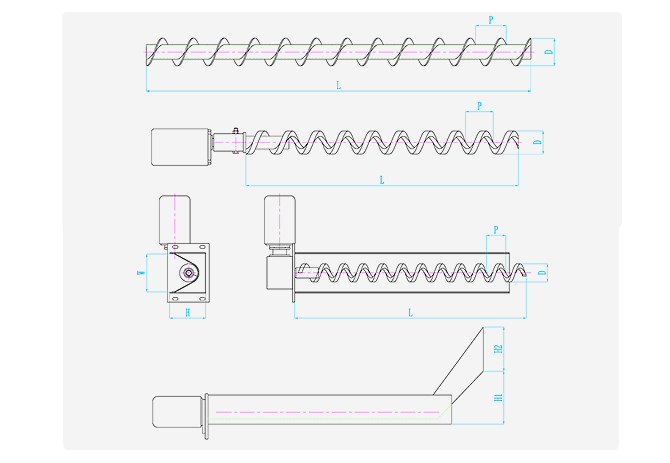 ZDLX系列螺旋排屑裝置是由減速機(jī)、螺旋體及殼體三部分組成。通過(guò)減速機(jī)驅(qū)動(dòng)螺旋體轉(zhuǎn)動(dòng),與殼體產(chǎn)生相對(duì)運(yùn)動(dòng),從而將切屑沿殼體軸向推出。根據(jù)使用情況,結(jié)構(gòu)形式可分為:
