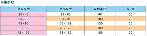 此型采用不銹鋼優(yōu)質(zhì)鋼及工程塑料材料制成,適用于短的移動行程和較低的往返速度,外形極為美觀。全封閉型的外亮,能完美地保護(hù)電線、電纜、軟管、氣管。以最小的外型尺寸得到最大的內(nèi)腔截面,噪音低。聯(lián)接器有四種不同的型式。